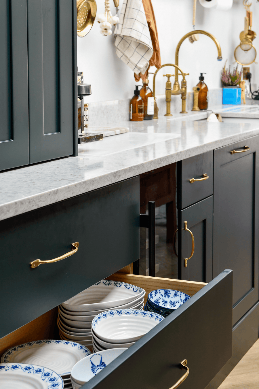 In the heart of Maidenhead, we were commissioned to design and deliver a bespoke kitchen that balanced timeless craftsmanship with contemporary luxury. The client envisioned a space that combined classic shaker detailing with bold finishes and practical, modern features.